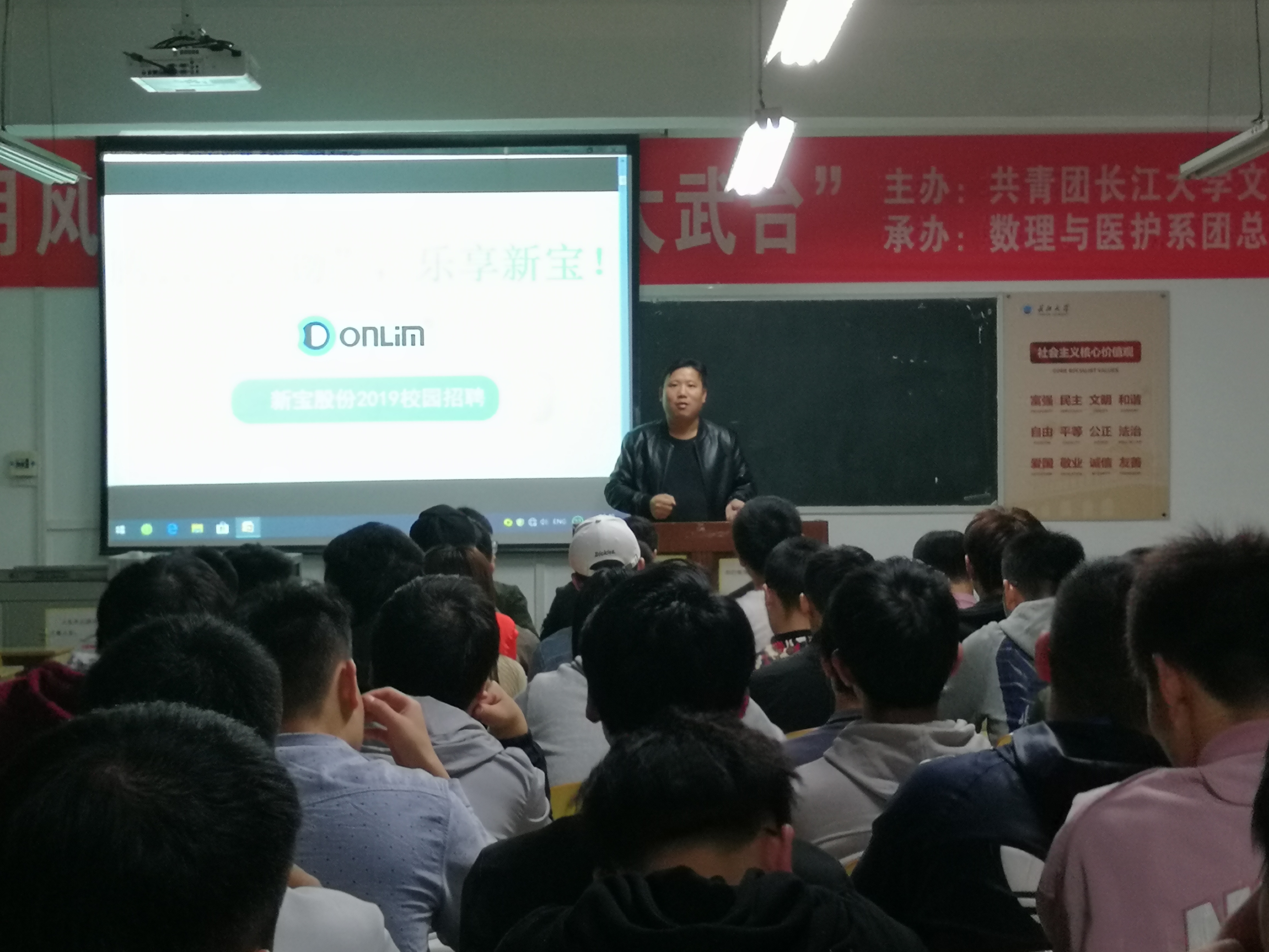 本网讯(员工记者曲孝佳)10月31日晚,在公司西校区四教201教室,广东新宝电器股份有限公司来我系举行专场招聘活动。活动由该公司人事经理刘灯美主持,学工部部长罗婷、副部长祝峰,系党总支副书记辛裕、辅导员成观雄出席,2020届毕业生参加。
