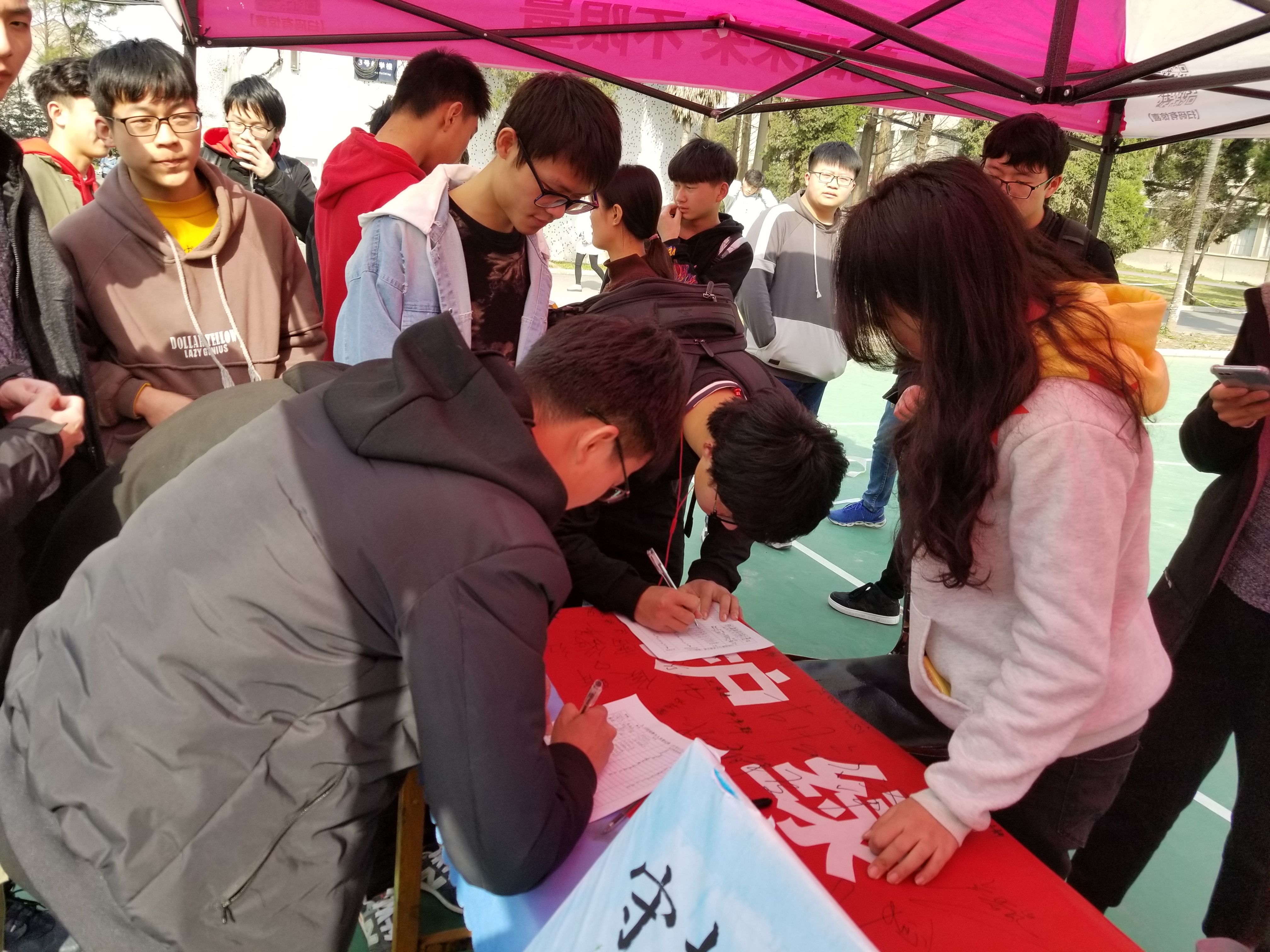 在系员工干部前期仔细策划和广泛宣传下,本次活动反响热烈,各项事宜进行的井然有序。同学们先在现场宣传横幅签名,并转发系部官方公众号关于活动动态,在集赞数达到要求的情况下可领取到盆栽植物等绿色纪念品。