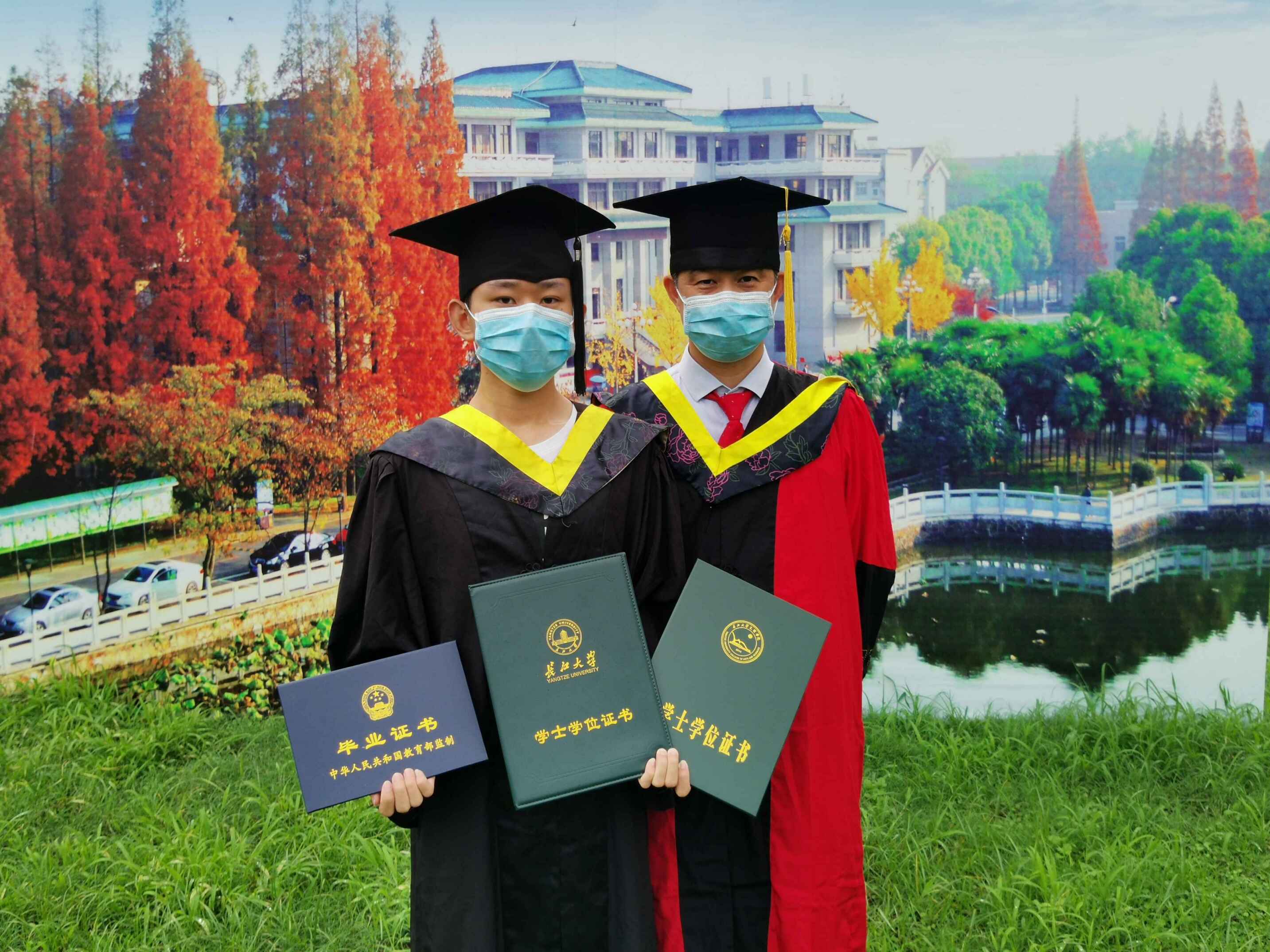 刘立夫(左)喜获双学士学位证书