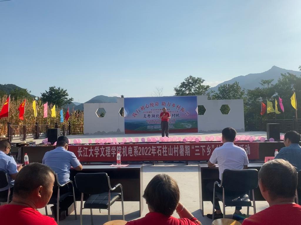 乡村振兴,既要塑形,也要铸魂,文化振兴是根本。实施乡村振兴战略,要发挥文化凝聚人心、坚定信心、引导村民的作用,提振精气神,激发广大农民投身乡村振兴的积极性和主动性。8月25日下午,由石柱山村委举办,伟德国际1946源于英国机电系协办,以“践行初心使命 助力乡村振兴”为主题举办三下乡文艺汇演暨评先表模晚会,社会实践服务队队员与石柱山村民一起参与。本次汇演共12个节目,内容精彩纷呈,形式多样。既有体现民族特色的《茶韵》《摆手舞》;又有教育意义的小品《榜样的力量》;同时也不乏体现年轻人的活力与朝气的舞蹈《少年》及歌曲《老男孩》,志愿服务队和小朋友们一起合唱《强军战歌》,在激扬的旋律里,大家动情地歌颂强军奋斗路,唱响未来新征程。同时在活动现场还进行了石柱山村基层治理和最美庭院的颁奖。活动现场座无虚席,掌声与欢呼声此起彼伏,活动在各方的配合下取得圆满成功。