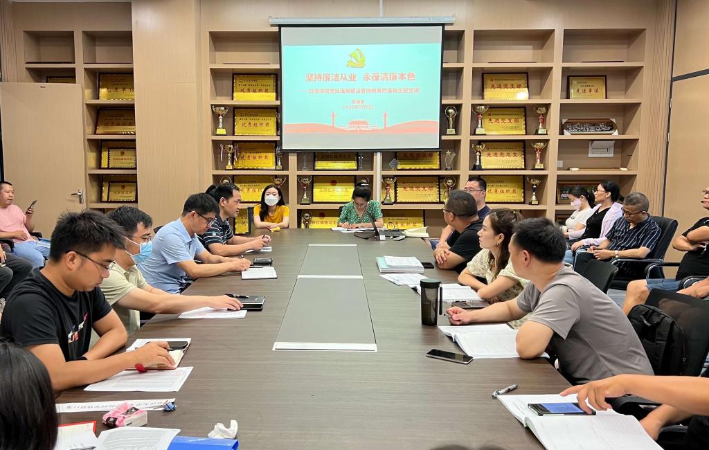 吴海良传达了学校2023年党风廉政建设宣传教育月活动部署会精神,安排了公司党风廉政建设宣传教育月工作,结合7月份支部主题党日活动围绕党风廉政建设宣传教育月活动主题开展警示教育。