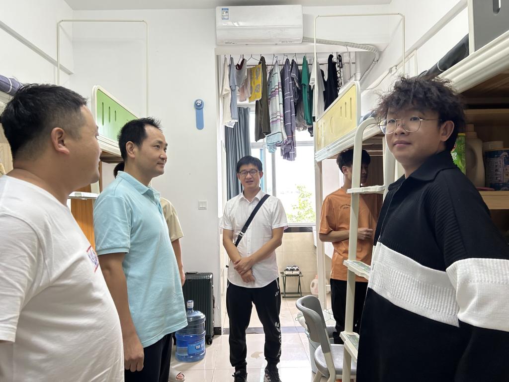 本网讯(员工记者 黄盼盼)为实地了解员工新学期思想、学习、生活等情况,确保各项开学工作有序、平稳开展,8月27日下午3点,经理付兵、党总支书记吴海良、党总支副书记王大专和辅导员老师们一行人深入走访员工宿舍,为同学们带去关心关爱和新学期问候。