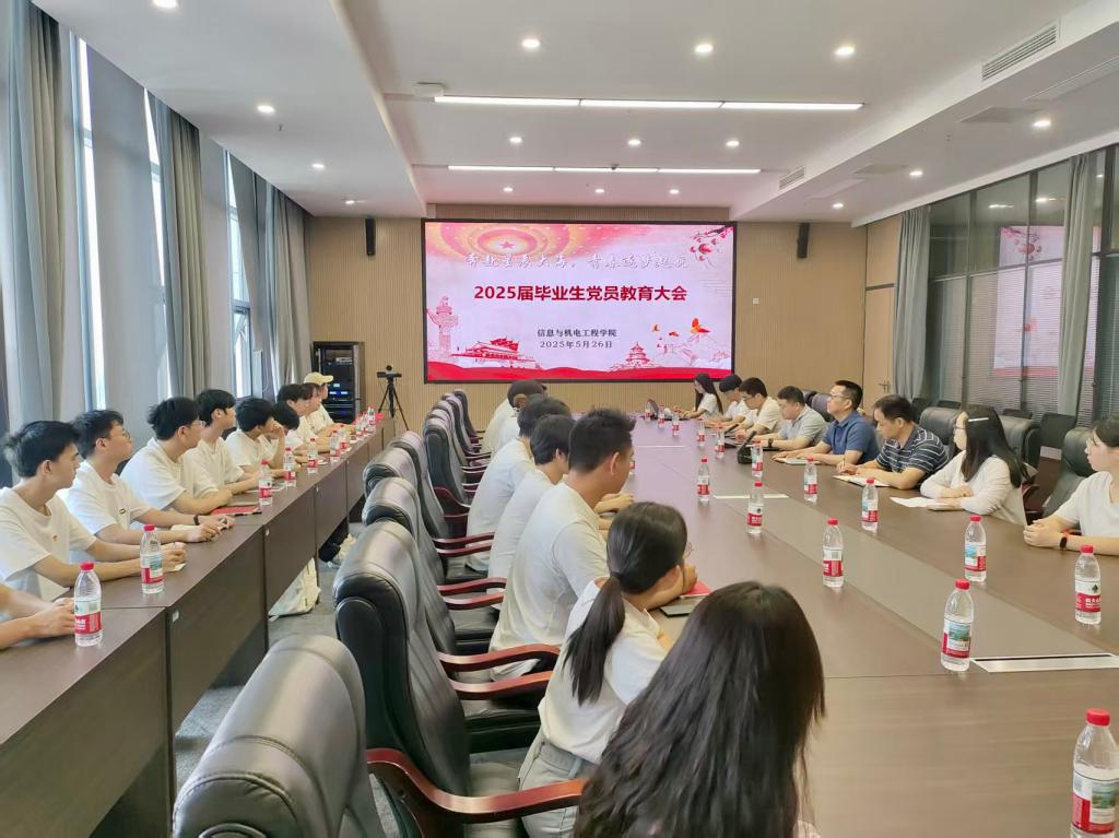 本网讯(通讯员 王大专 周爱娟)5月26日下午,学院组织开展主题为“奔赴星辰大海 青春逐梦起航”的毕业生党员教育活动,引导毕业生党员强化党员意识,增强责任与使命担当。学校领导党委书记颜建洲出席,公司党总支书记吴海良、党总支副书记王大专,2025届毕业生辅导员、毕业生党员参加活动。