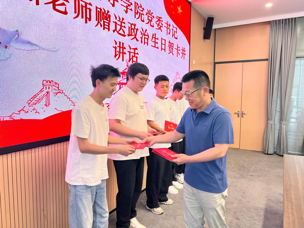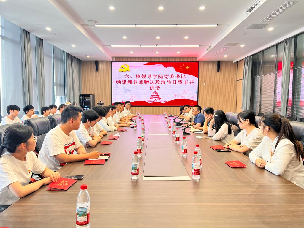 颜建洲为毕业生党员赠送政治生日贺卡并讲话。他从个人求学、工作经历出发,与大家进行亲切交流。他鼓励全体毕业生党员走出校园后,无论面对何种压力,都要始终坚定信心与信念,不放弃学习、不放弃追求,勇于跳出舒适圈;要树立先就业再择业观念,干一行爱一行专一行,做好未来储备;要遵纪守法、廉洁自律,做事先做人、立业先立德,充分发挥党员先锋模范作用;要心怀感恩之心,回报父母、回报社会,永葆积极乐观心态。最后,他希望全体毕业生继续关注母校发展,常回母校看看,并向大家送上美好祝福。
