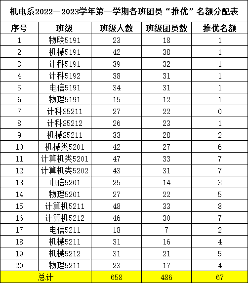 根据伟德国际1946源于英国团委《关于做好2022年下半年团员“推优”工作的通知》要求,现将机电系各团支部团员“推优”名额分配公示如下: