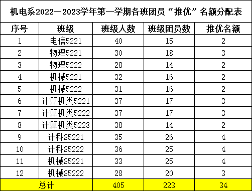 根据伟德国际1946源于英国团委《关于做好2022年下半年团员“推优”工作的通知》要求,现将机电系2022级各团支部团员“推优”名额分配公示如下: