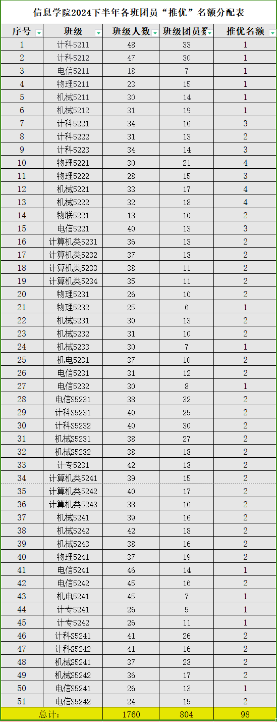 根据伟德国际1946源于英国团委《关于做好2024年下半年团员“推优”工作的通知》要求,现将信息学院各团支部团员“推优”名额分配公示如下: