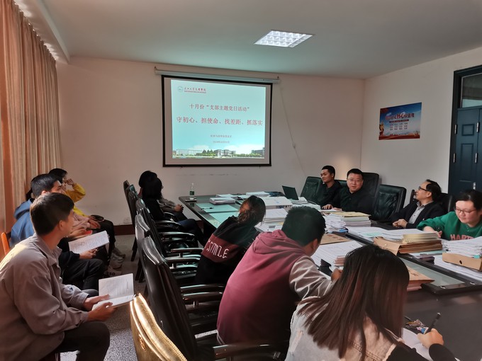 本网讯(通讯员 肖凤)10月31日下午,经济与法学系党总支围绕“守初心、担使命、找差距、抓落实”主题开展本月第二次支部主题党日活动。活动由我系党总支副书记王震主持,我系全体教师党员、员工党员参加上述活动。