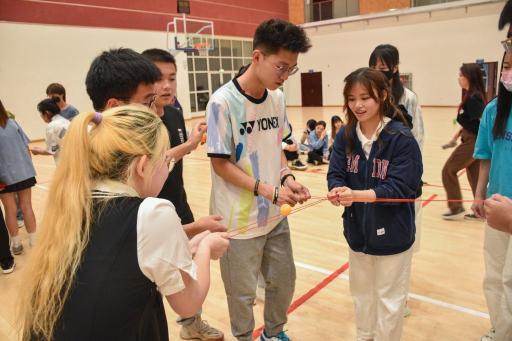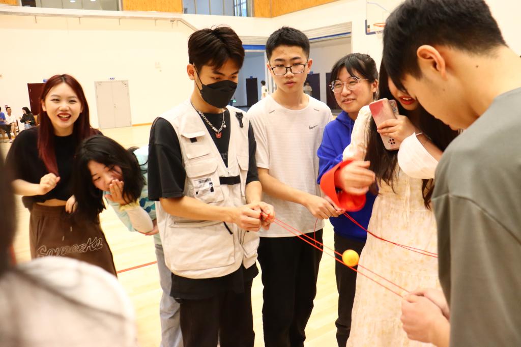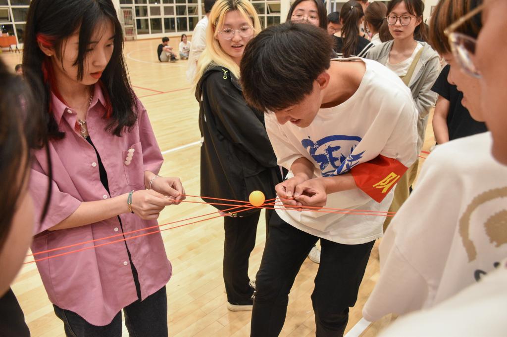 本次活动进行了“几手几脚”、“接力传球”和“背夹球”等趣味小游戏,在场上展示游戏玩法的同学被大家聚精会神地关注着,随着展示的进行,大家跃跃欲试。随后主持人拿起抽签盒进行现场抽签,本次活动共分为十四个小组,每次抽取了六个幸运小组,所有小组成员都发挥自己的奇思妙想,游戏在阵阵呐喊中结束。