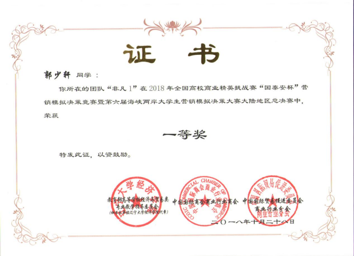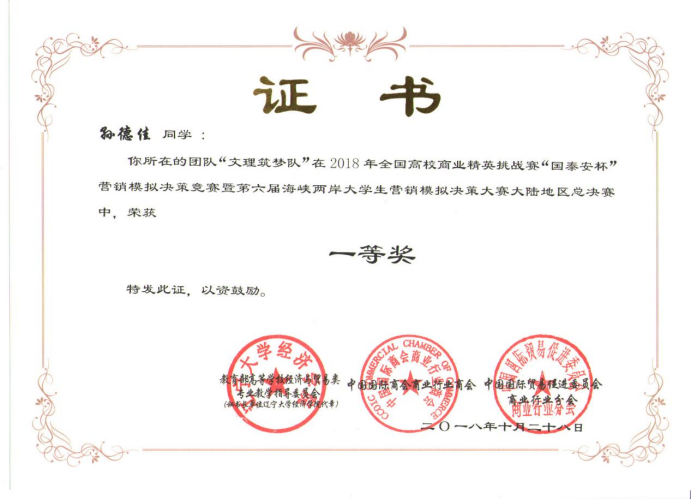 全国高校商业精英挑战赛“国泰安杯”营销模拟决策竞赛暨第六届海峡两岸老员工营销模拟决策大赛大陆地区总决赛 一等奖