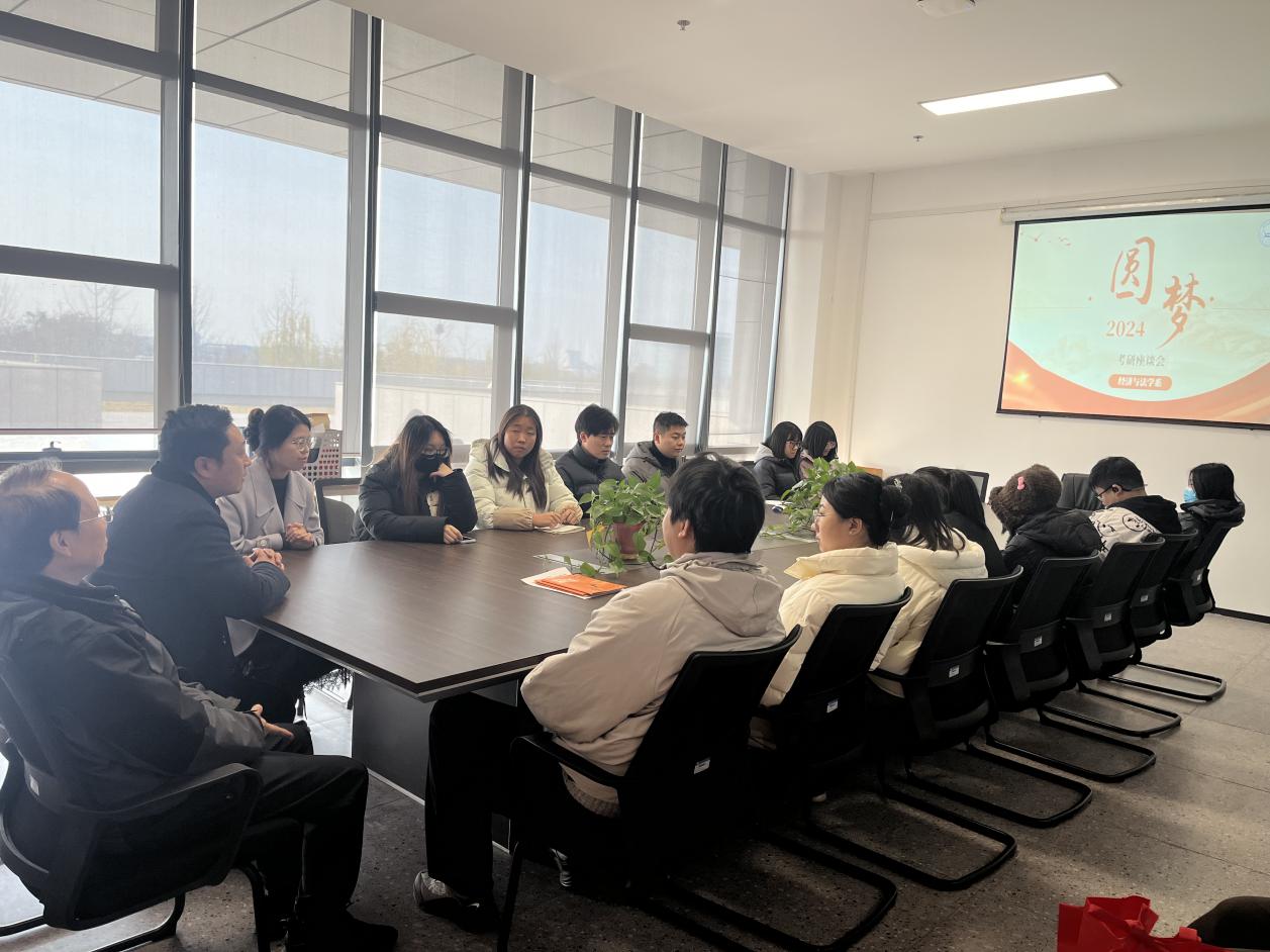 本网讯(见习记者:余好 刘兴俊)为鼓励即将踏上考研战场的学子们。12月20日,经法系在会议室召开“圆梦,下一站上岸”考研座谈会。经法系系主任万楚军、党总支书记辛裕、辅导员卢佳智、刘曼莹、黄春桥及2025届考研学子参与。