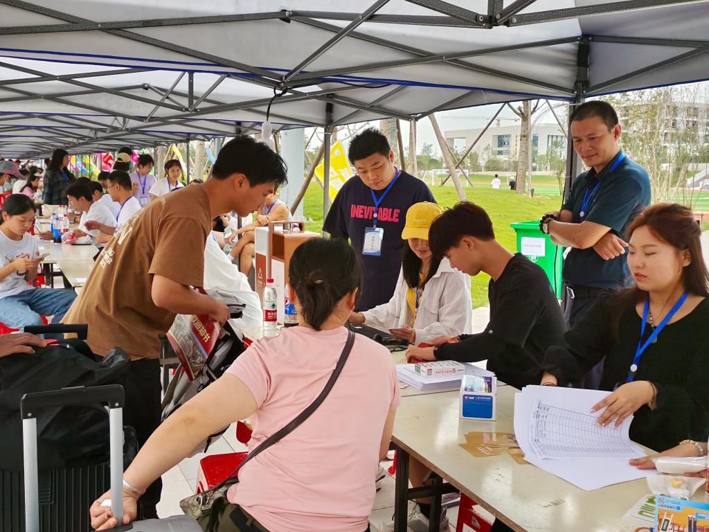 九月二日一大早,经法系党总支书记邹姜,常务副主任罗明、党总支副书记杨杉杉来到现场,统一指挥协调迎新工作。各新生班辅导员、团总支员工会志愿者服务队成员及全体员工干部等也齐聚迎新现场,为迎新工作蓄势待发。迎新现场高挂着迎新横幅,迎新准备工作有条不紊的开展。迎新过程中,经法系领导班子殷切询问各项工作进展和新生情况,悉心指导亲身参与,字字句句充满关切。同时,系部领导还和学院领导一起为报到当天过生日的同学送上生日祝福。各班辅导员耐心解答新生的问题,认真登记收集好员工的相关资料,和各自班级同学亲切交流并了解班级同学情况。志愿者们带领着2023级新生进行身份核验,办理入学手续,帮助新生们搬运行李,怀揣着饱满的热情迎接新生的到来。经法系师生们热情周到的服务很快消除了新生出来乍到的陌生感紧张感,良好的工作素养和热情细致的服务态度形成一道亮丽的风景线。