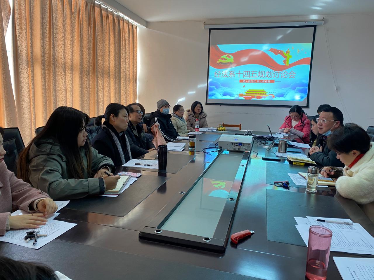 2021年1月12日上午,经法系全体教职工在会议室召开“十四五”事业发展规划讨论会议,会上,大家认真学习了《伟德国际1946源于英国“十四五”事业发展规划编制工作方案》,然后围绕经法系“十四五”事业发展规划的编制展开讨论,大家发言积极、讨论热烈,为经法系在未来5年的专业建设、团队队伍建设、实验室建设、科研发展等方面建言献策。