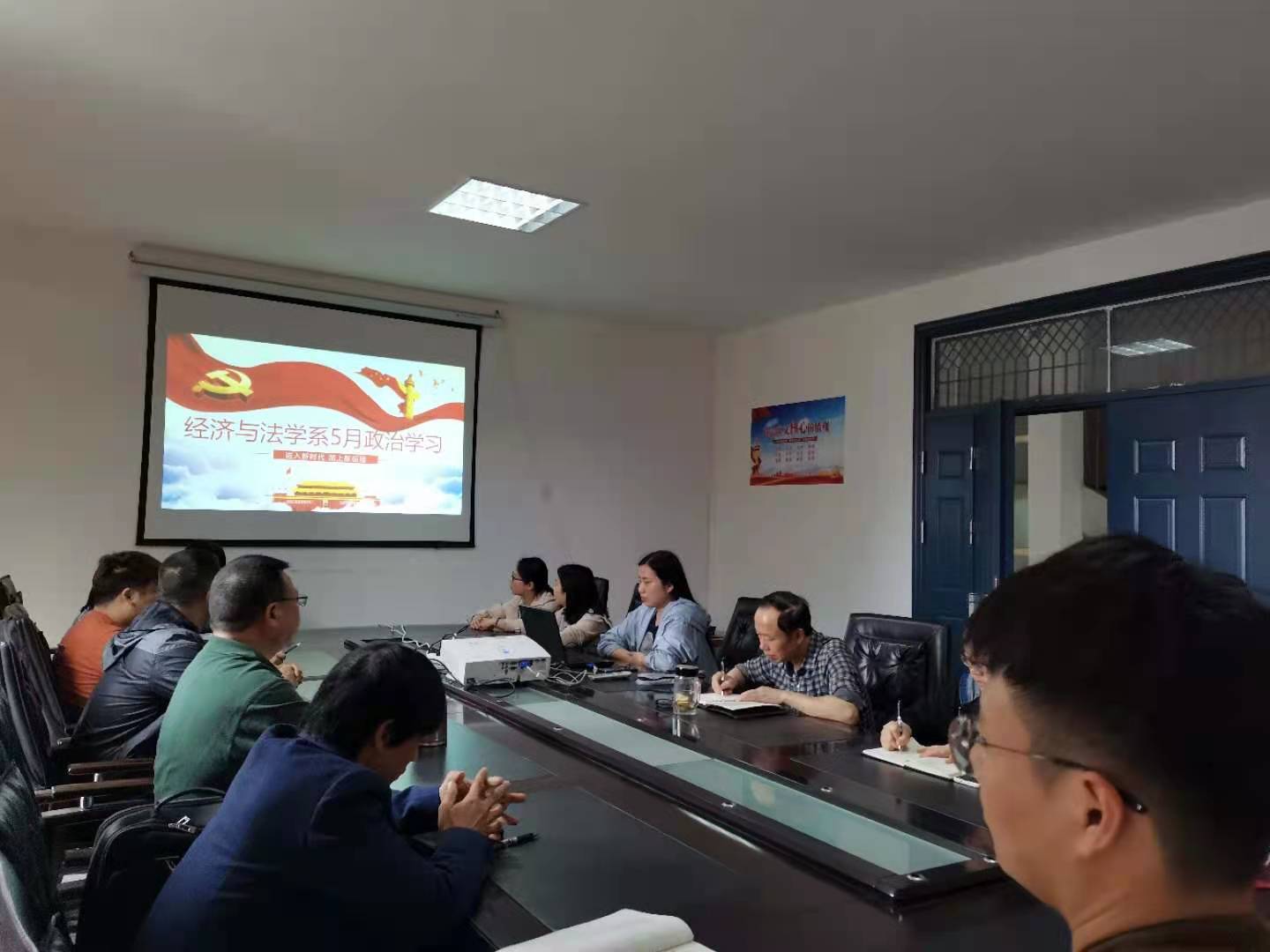 5月20日下午14:30,经法系全体教职工在系会议室开展5月政治学习和支部主题党日活动。会议由党总支书记李成军主持。