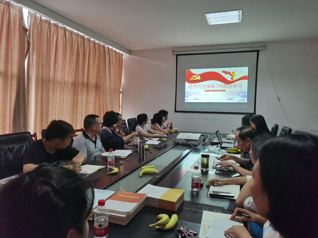 7月11日上午9:30,经法系全体教职工在系会议室开展7月政治学习。会议由党总支书记李成军主持。