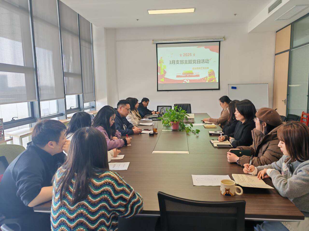3月20日下午2:00,经法系教工支部在系会议室开展3月政治学习和支部主题党日活动。会议由教工党支部书记陈莉主持。
