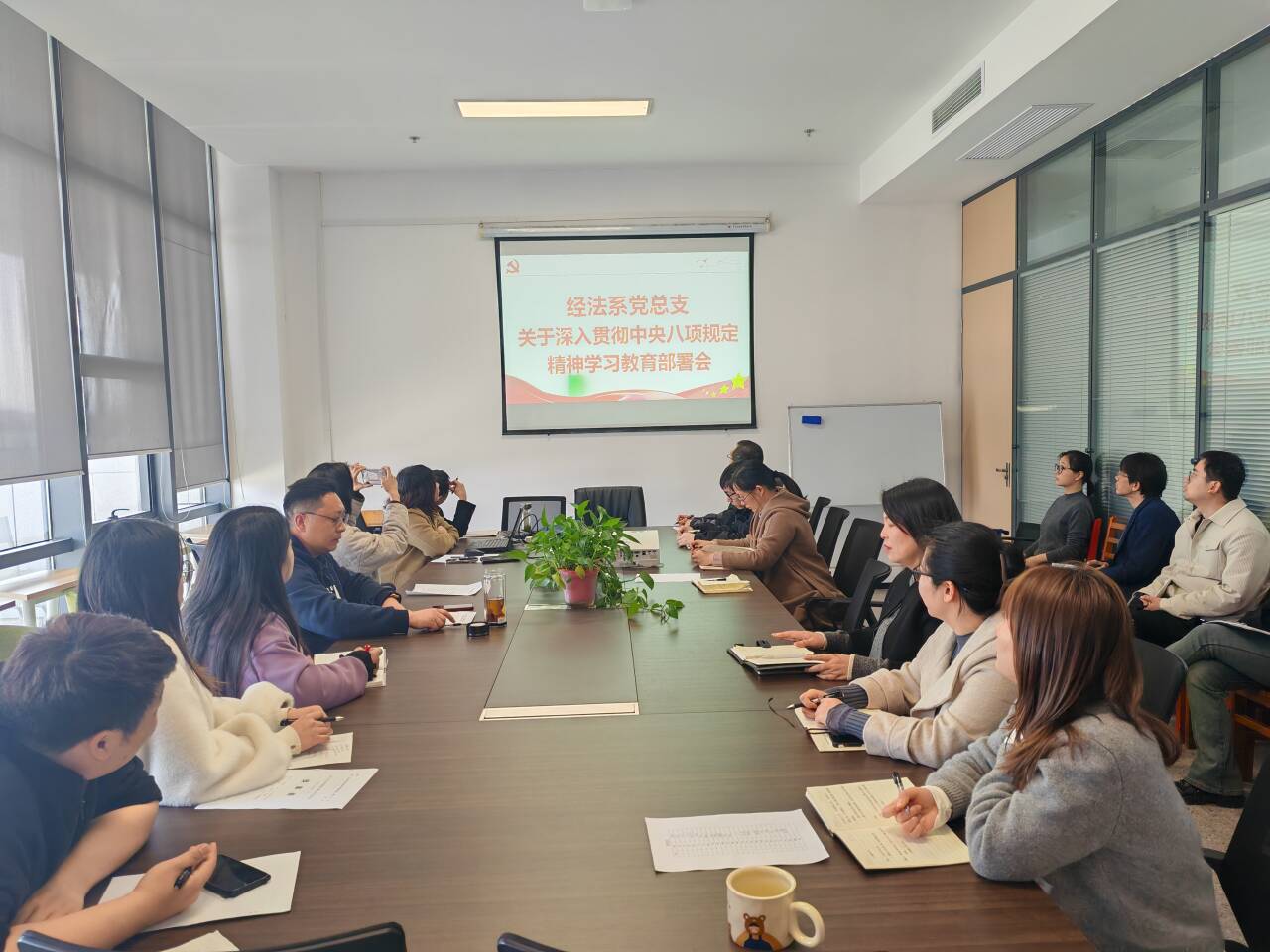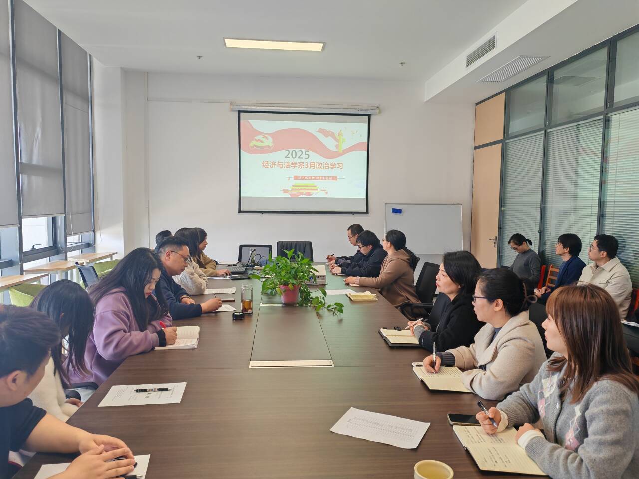 首先,全体教职工在教工党支部书记陈莉的带领下进行政治理论学习。全体教职工集中学习了习近平总书记在看望参加政协会议的民盟民进教育界委员时的重要讲话;2025年全国两会精神;2025年全国教育工作会议精神;2025年全省教育大会精神。会上,党总支书记辛裕对经法系党总支关于深入贯彻中央八项规定精神学习教育进行部署,带领大家共同学习了会议精神和中央八项规定及其实施细则,统一了经法系教师的思想认识,明确了工作方向。同时,全体教职工共同学习了师德师风,中国教师报《“七有”才论教育家》。