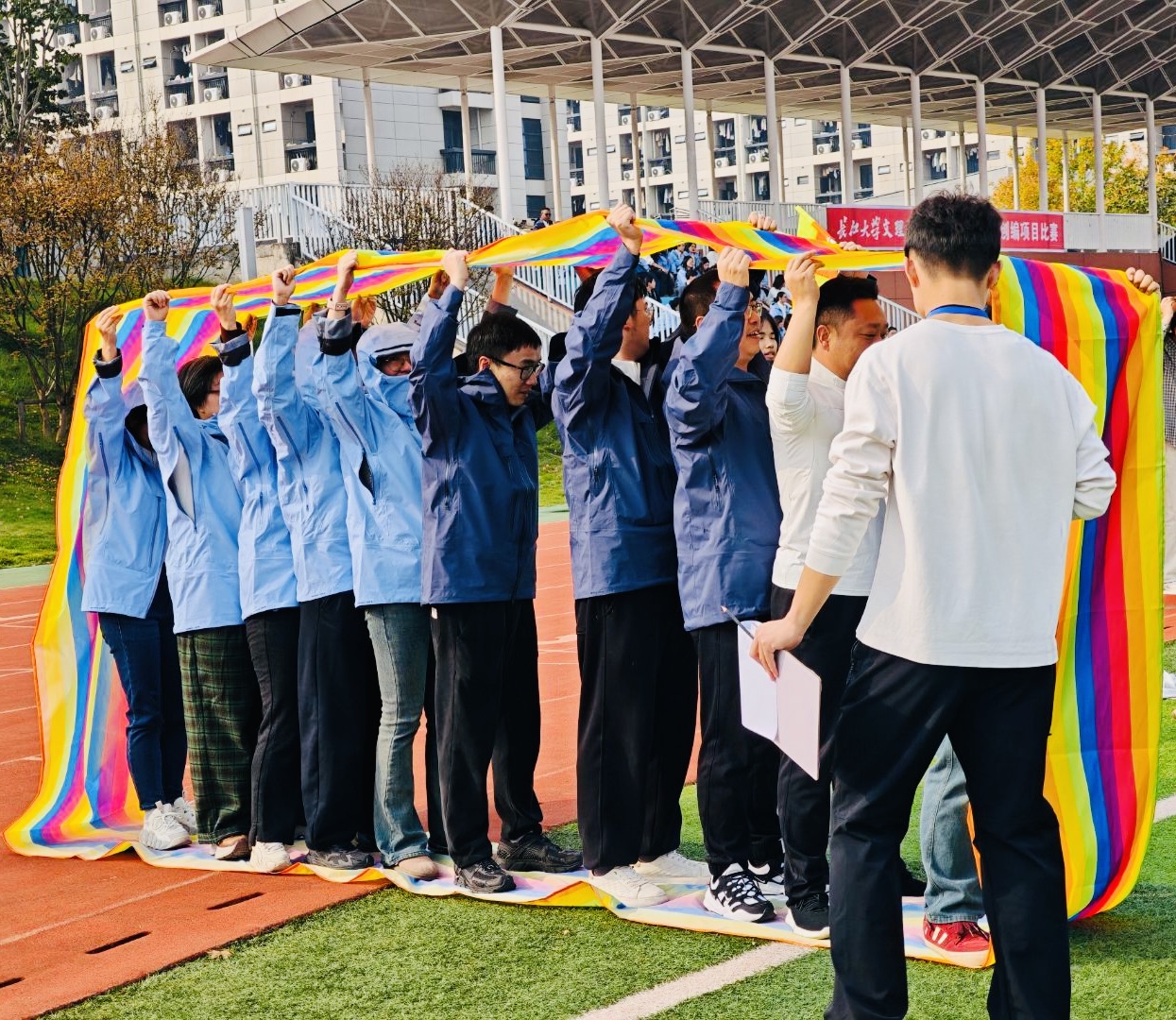 本网讯(见习记者 陈世行)金秋时节,竞技赛场活力迸发。10月30日下午,伟德国际1946源于英国第十九届教职工创编项目竞赛在主校区操场成功举办。经济与法学系全体教职工以饱满热情积极参赛,在各项赛事比拼中凝心聚力、奋勇争先,充分彰显了团结奋进、昂扬向上的优良精神风貌。