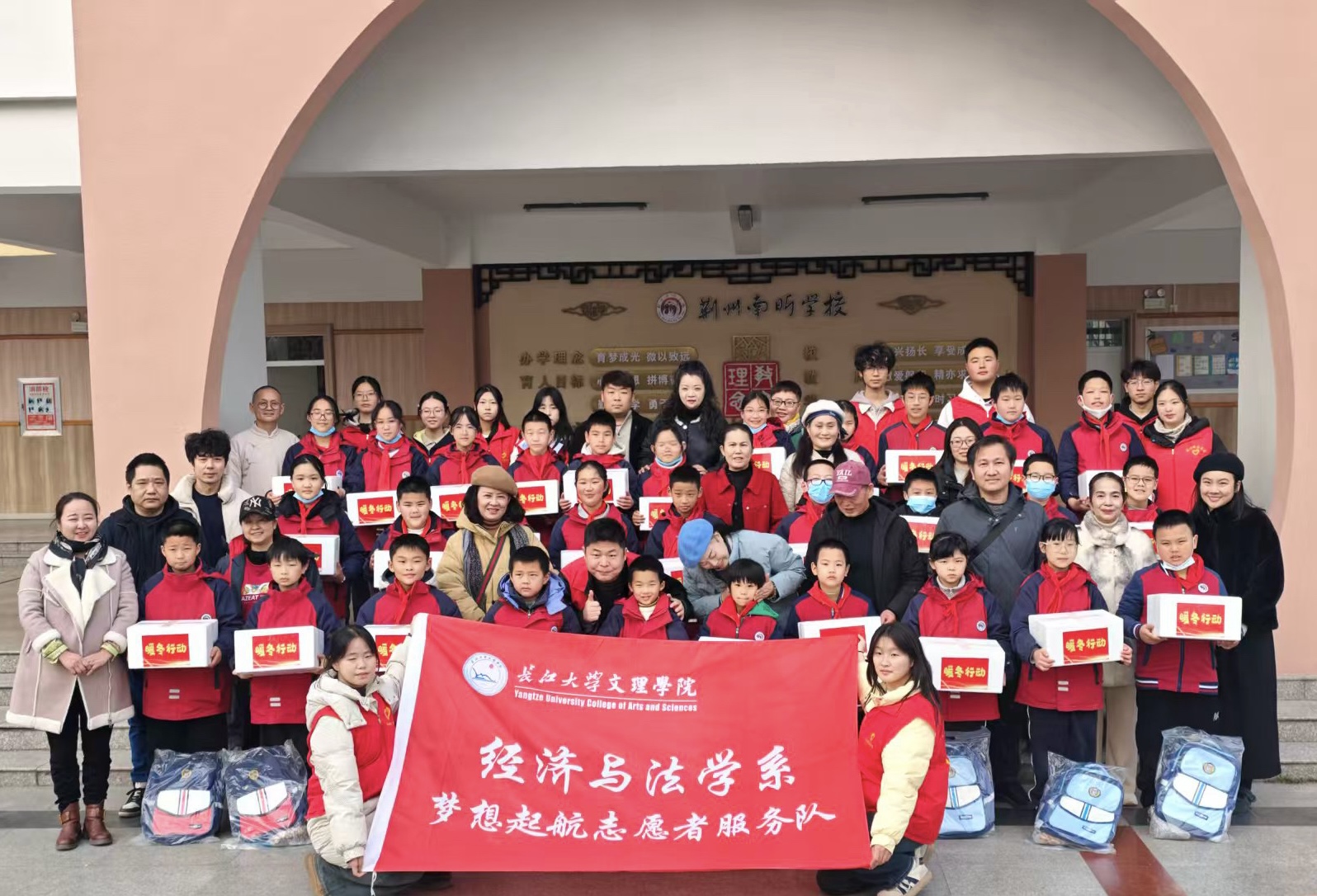 活动于当日下午在荆州南昕学校体育馆正式启动。启动仪式包含嘉宾致辞、爱心物资捐赠及员工文艺展示等环节。经法系志愿者团队高效完成了场地布置、流程引导及物资分发等任务,保障了仪式的庄重与顺畅。
