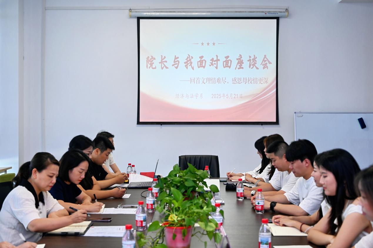 2025年5月21日下午,经济与法学系在系部会议室隆重举行以“回首文理情难尽,感恩母校情更深”为主题的毕业生座谈会。本次活动旨在通过师生互动、员工分享等形式,回顾莘莘学子在校期间的成长历程,表达对母校的深深眷恋与感激之情。校领导学院副经理李波,经济与法学系常务副主任罗明、副主任周密、党总支副书记杨杉杉、经法系教师代表及2025届毕业生代表参加座谈会,会议由卢佳智主持。