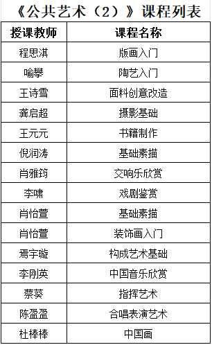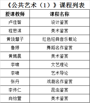 3.《公共艺术(1)》、《公共艺术(2)》课程列表如下: