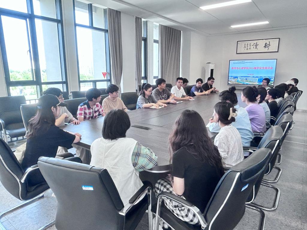 同日下午,为了更好地倾听毕业生心声,教育与心理学院在会议室召开“2024届毕业生座谈会”。了解毕业生代表关于毕业和就业困难的现实状况,听取毕业生们对学校建设发展的建议。会上,祝峰帮助学子解难纾困,明晰就业方向,鼓励毕业生党员继续秉承文理学子的责任担当,在未来的工作岗位上发挥党员先锋模范作用。
