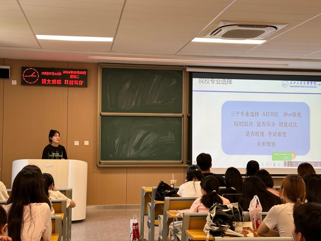 5月28日,教育与心理学院在C-219教室举办考研分享会。组织毕业生党员以未来员工的身份,通过向低年级的同学分享大学四年的学习心得,考研经验,并建立党员员工导师长效联系机制,充分发挥党员示范引领作用。围绕学院“两康一训”教育工作,促进员工高质量就业。