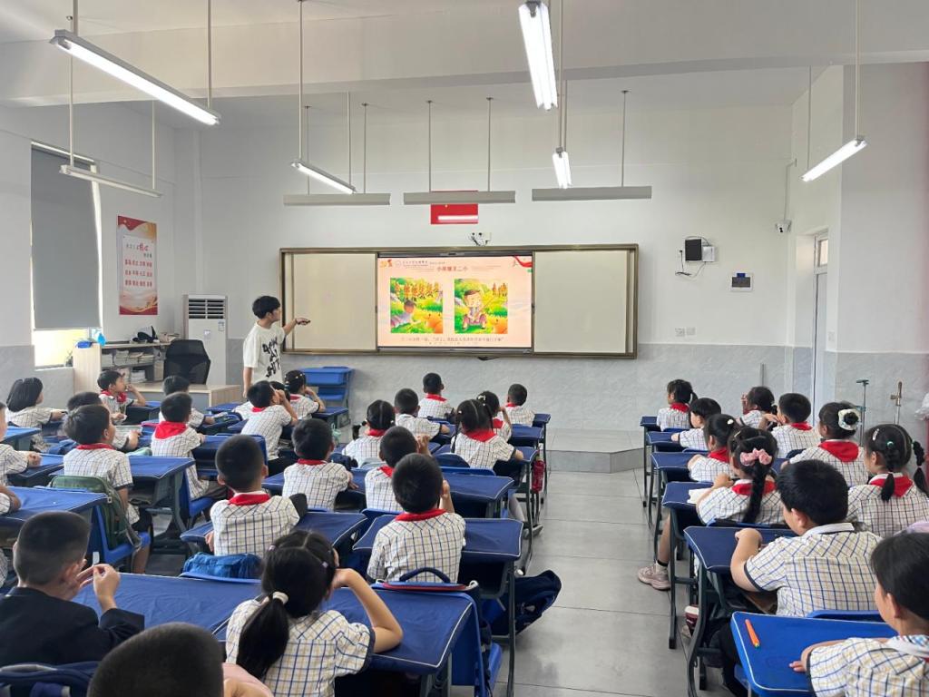(通讯员 图/文 李诗羽 李俊涛)为了深化红色文化与思政教育的有机融合,推进“大中小思政一体化”建设落地生根,锻炼老员工党员的社会实践和教育传播能力,6月5日下午教育与心理学院员工党支部组织全体老员工党员走进荆州市实验小学城南校区,为二(1)班的员工们精心打造了一场别具特色的红色主题教育实践活动,通过形式多样的互动模式,播撒红色精神的种子。