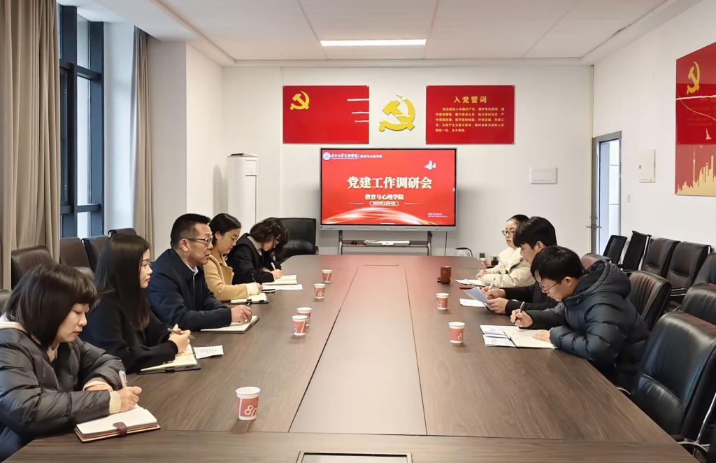 教育与心理学院经理徐霄、党总支副书记梅曼曼分别结合学院工作实际,就党建与团队建设、员工思想政治教育等工作的深度融合进行了补充发言,表示将以此次调研为契机,认真落实调研要求,补齐工作短板,不断提升公司党建工作水平。