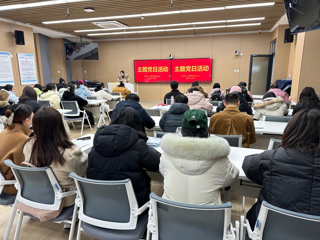 12月12日下午,教育与心理学院在实验楼408教室开展12月份政治理论学习和支部主题党日活动。会议由教工党支部党员教师陈盈盈主持,全体教职工及员工党员参加。