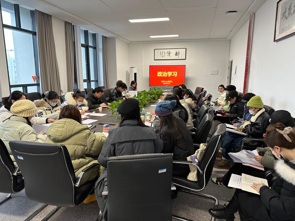 1月18日下午,教育与心理学院在JY304会议室开展2024年1月份政治学习和支部主题党日活动。会议由教育与心理公司党总支书记祝峰主持,全体教职工参加,员工党员线上参会。