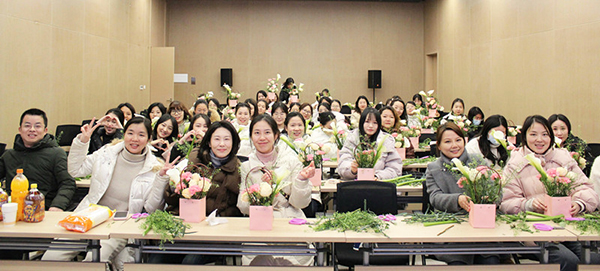 3月5日,在图书馆103报告厅举办插花活动庆祝妇女节。副经理李波出席活动并向全体女教职工致以节日的问候和美好的祝愿,教育与心理学院分工会和多名女教职工代表参加活动。