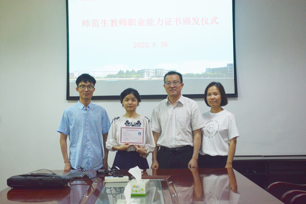 今年3月,教育与心理系组织相关教师成立了师范生教师职业能力考核小组,制定了《伟德国际1946源于英国学前教育专业教团队格免试认定方案》,完成了首次幼儿园学段教师职业能力测试,于6月16日向首批教师职业能力测试合格的员工颁发了《师范生教师职业能力证书》。(图文由教育与心理系提供)