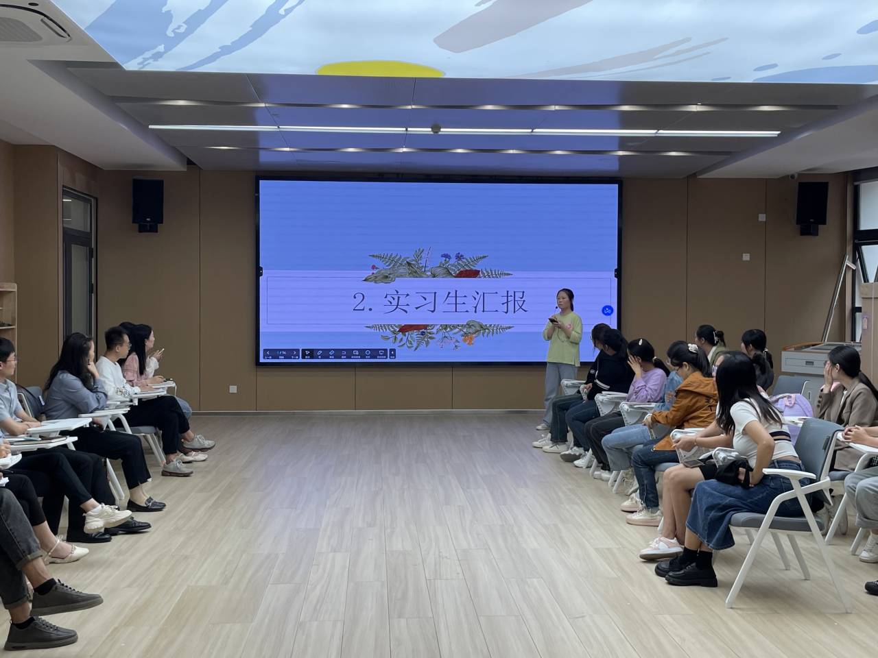 活动最后,肖雅筠老师对本次活动进行总结,她表示同学们虽然只实习了一个月,看到大家能在短时间内适应幼儿园生活倍感欣慰。希望在后续的实习中能够继续保持勤学好问,勇于挑战的状态,顺利完成实习计划。