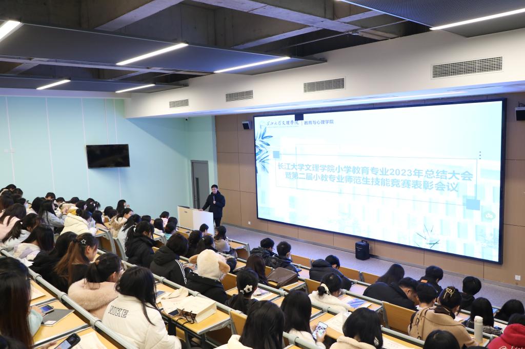 本网讯(通讯员 杜慧)为了全面总结公司小学教育专业在过去一年所取得的成绩,1月4日下午6点,教育与心理学院小学教育专业在教学楼B214教室举行2023年总结大会暨第二届小教教育专业师范生技能竞赛表彰会。教育与心理学院经理徐霄、小学教育专业部分教师、辅导员及全体员工总结大会。