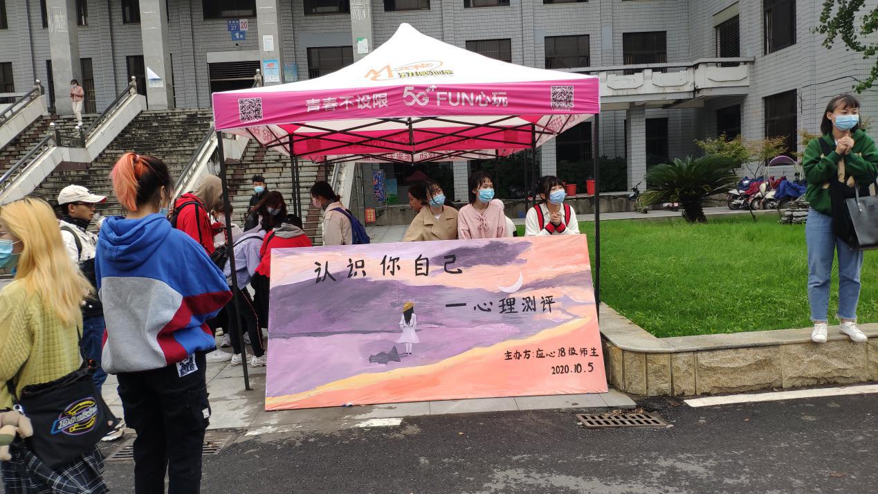 本网讯(员工记者 刘洋)10月5日上午,我系应用心理学专业18级全体师生组织了“认识你自己—心理测评”活动。同学们在一教楼前为全校同学提供9种不同类别的心理量表,为每一位前来参与活动的同学进行一对一的测评,并对同学们存在的疑惑做出相应的解答。同学们积极参与,气氛非常融洽。