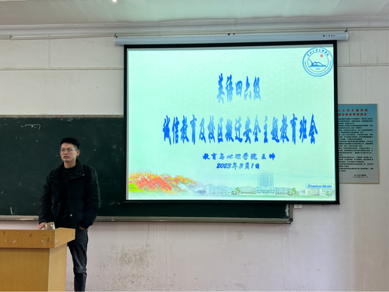 为提高同学们的安全防范意识和避险能力,保证同学们的四六级考试及校区搬迁期间的人身安全,3月1日下午,公司所有班级召开了四六级诚信考试及校区搬迁安全教育主题班会。