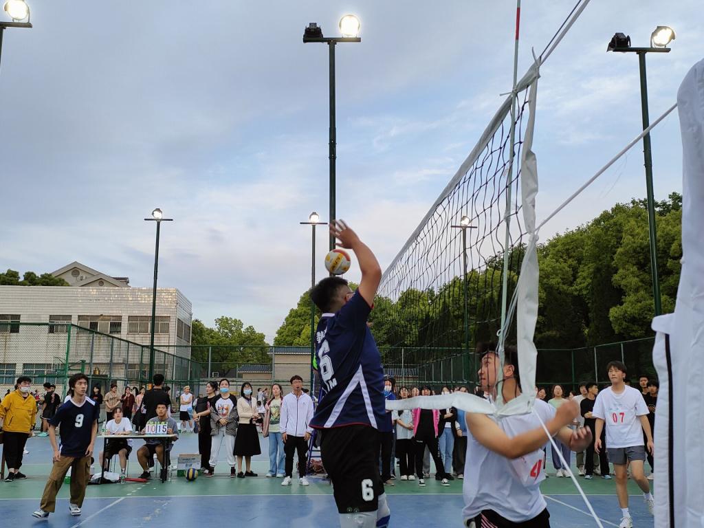 伴随着开球哨声响起,比赛现场加油声此起彼伏,我系与管理系开场就进入了拉锯战,经过激烈角逐,我系以25:23拿下开局,团队之间的默契传球、完美配合引来现场球迷阵阵喝彩。最后两局,我系因小分不敌管理系,遗憾落败,取得第四名的成绩。