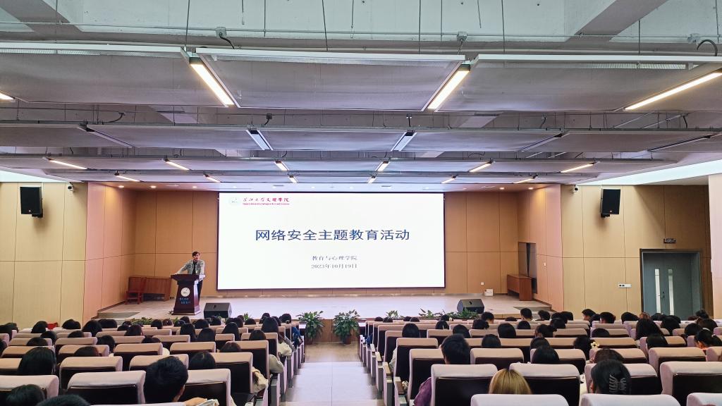 本网讯(通讯员柯浪)为提高青年员工的网络安全防护技能和自我保护能力,加强国家安全知识和网络安全知识的深度学习,教育与心理学院于10月19日在学术报告厅开展了一次网络安全主题教育活动。教育与心理公司党总支书记祝峰,副书记梅曼曼,辅导员薛兰慧及200余名员工参与会议。