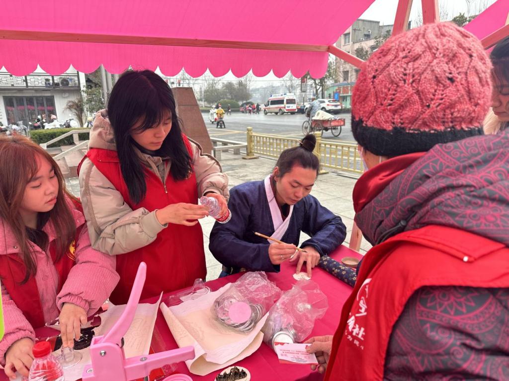 活动为广大社区居民提供了政策宣讲、便民帮办、科普宣传、爱心义剪义诊等方面的文明实践和志愿服务。在政策宣讲台前,志愿者对照发放的宣传单、政策明白卡等资料逐个宣讲,帮助居民了解各种福利政策。在科普宣传台前,志愿者向女同胞们普及预防宫颈癌健康知识,提供免费宫颈癌筛查预约登记,方便女同胞了解卫生健康知识和惠民服务。志愿者还向居民宣传反诈知识,指导居民下载使用国家反诈中心APP,守护居民钱袋子。特色非遗服务摊位前,志愿者帮助非遗传承人完成糖画、国风书签勋章的制作,弘扬中国优秀传统文化。