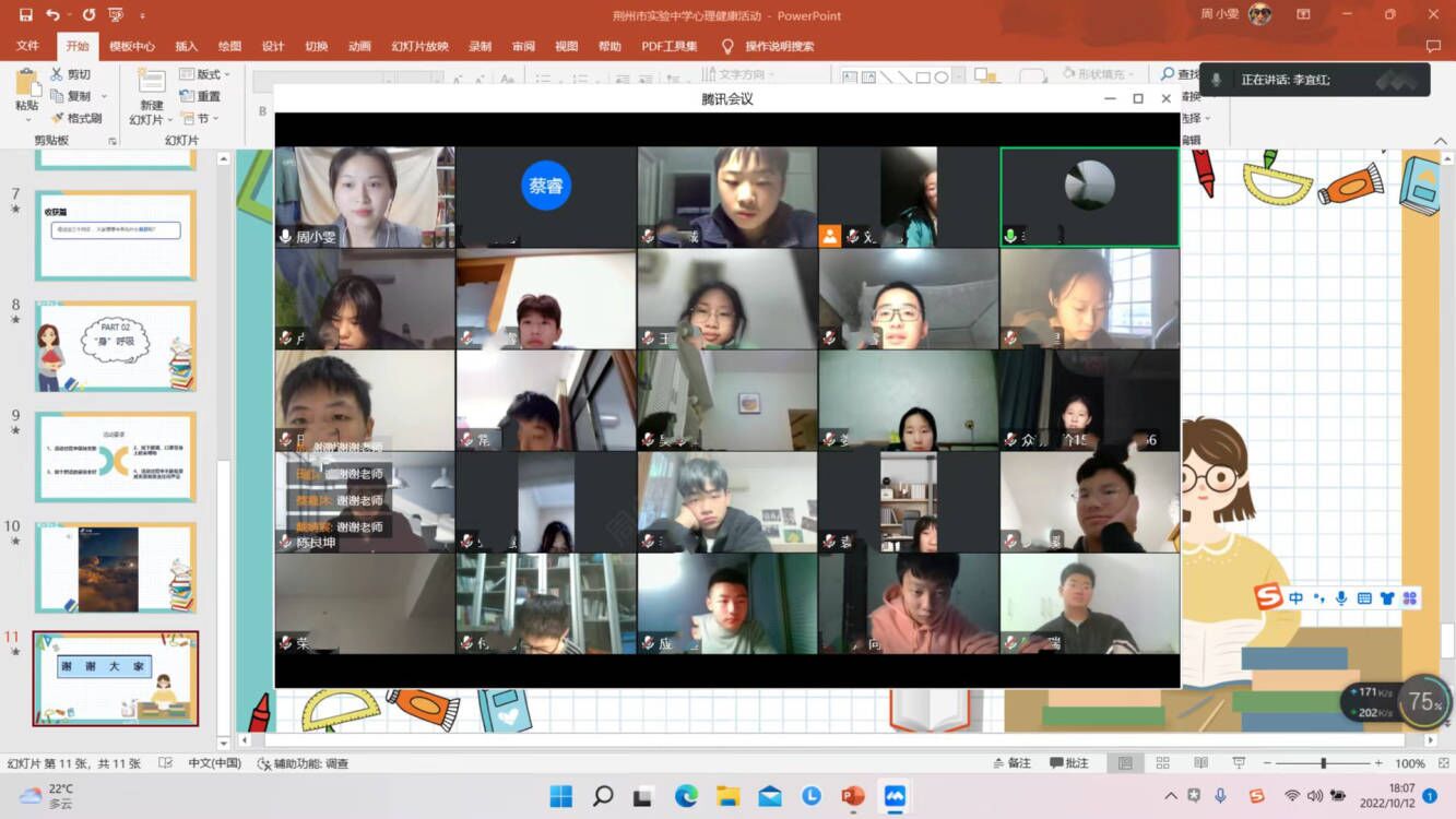 本网讯(通讯员 刘娅)当前,疫情防控形势严峻,面对这场“疫情大考”,10月12日,公司教育与心理系志愿者、应用心理学专业员工周小雯为荆州市实验中学一批初三员工开展了线上心理辅导。志愿者通过了解员工居家学习的困难,围绕"疫情期间如何缓解压力"的主题,针对初三同学给出应对压力的办法,缓解其紧张、焦虑等不良情绪,帮助大家保持良好心态,积极备战中考。