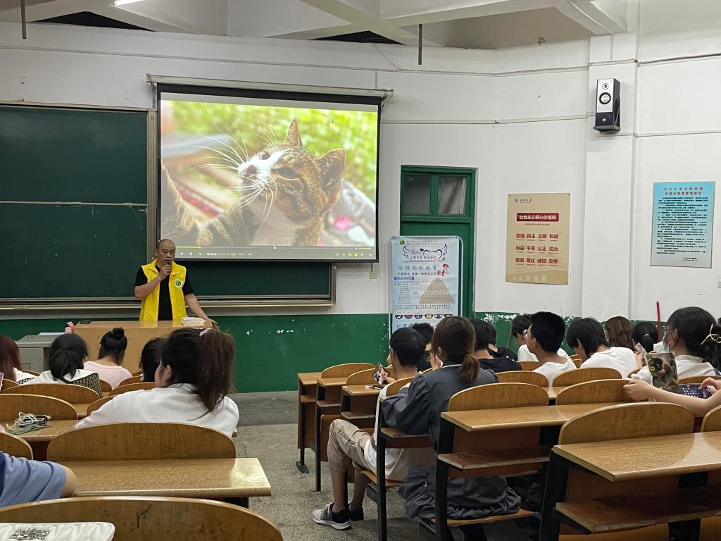 本次活动旨在通过宣传活动和爱⼼公益讲座,向老员工普及科学养宠的⽅法,树⽴⼤学⽣保护⼩动物的观念。同时,恰逢毕业季,通过“爱⼼捐物”活动,为流浪动物保护中⼼筹集毕业⽣离校留下的废弃棉絮以及冬装等,同学们纷纷为流浪动物提供相应的物资帮助和⽀持,奉献自己的爱心。