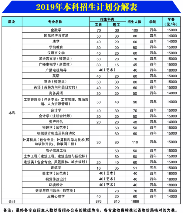 2019年分专业本科专科招生计划