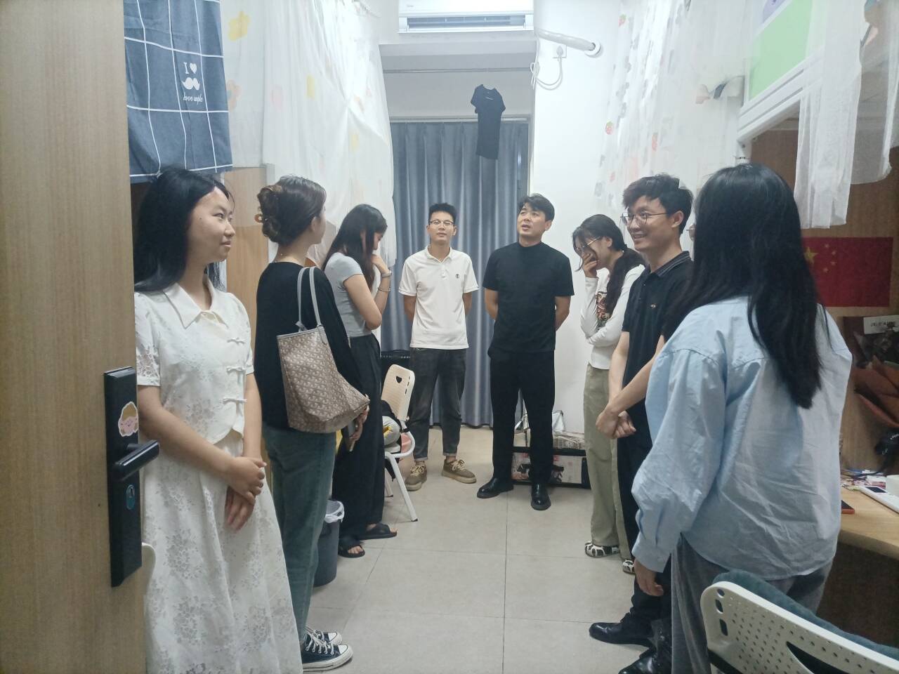 (通讯员曹馨月)6月1日晚,教育与心理学院经理徐霄、党总支书记祝峰、毕业班辅导员以及班主任来到毕业生宿舍,走访查看毕业生的住宿状况,认真了解就业情况,并仔细叮嘱论文修改相关事宜。