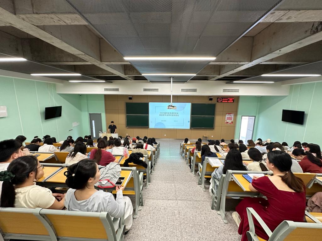 会上,辅导员彭盼首先以学院发布的最新的学位授予文件解读为切入点,提醒毕业生根据培养方案内容,提前规划好学分情况及时查漏补缺,强调毕业生关注自身的学业完成情况和论文写作的进展,重视对《学位法》的学习。随后,彭盼通过视频讲解、图片展示等方式,为毕业生详细讲解了就业网签、档案去向确认等方面的操作步骤,并针对同学们提出的问题进行了耐心细致的解答。
