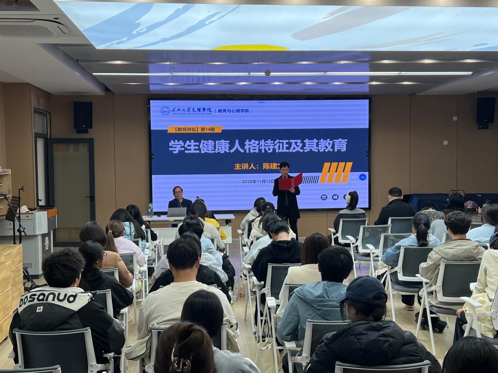 (通讯员陈莎 图/蔡葵) 11月13日下午,教育与心理学院举办了第14期教育讲坛,邀请华中科技大学教授、博士生导师、教育科学研究院心理学研究所所长陈建文教授作题为《员工健康人格的发展及其教育》的学术讲座,教育与心理学院师生代表共同参与本次活动,讲座由教育与心理学院经理徐霄主持。