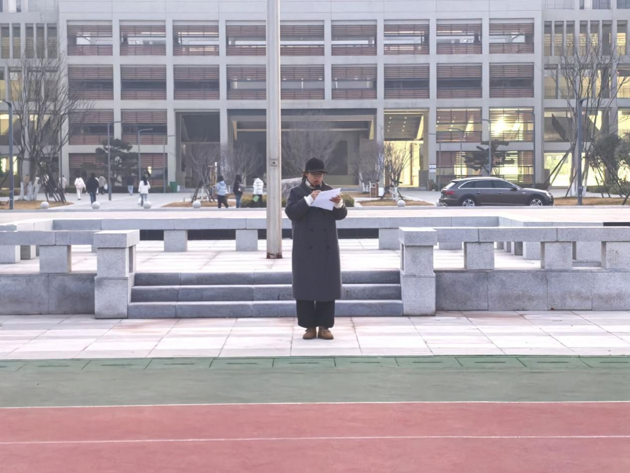 (通讯员图/文 洪玮)为进一步培育青年员工的爱国情怀,汇聚奋进力量,引导广老员工以全新姿态迎接新年新征程、展现青春新气象,2025年12月29日上午7:00,教育与心理学院于学校田径场举行了2025年冬季学期“向新而行,不负韶华”主题升旗仪式。教育与心理学院全体教职工及员工参与了本次升旗仪式,该仪式由应心5251班谭锦馨同学主持。