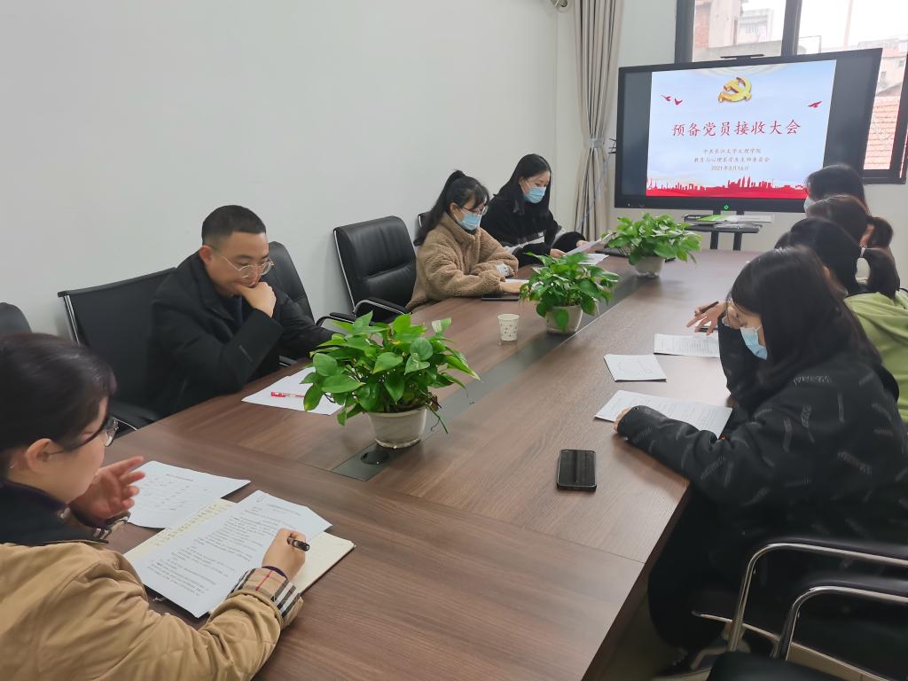 本讯网(通讯员 梅曼曼)为响应党的号召,培养优秀党员,3月16日中午,教育与心理系员工党支部在系会议室召开预备党员接收大会,该会由教育与心理系党总支副书记梅曼曼主持,相关培养考察人,以及支部所有党员参加了会议。大会围绕接收钟欣莹,朱文静2名发展对象成为预备党员,并通过大会讨论并决定发展对象的入党问题。
