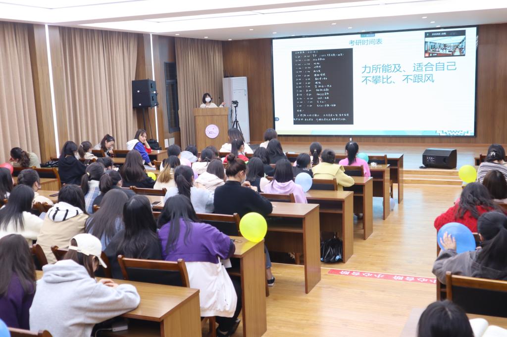 会上,专业教师胡蝶根据我系员工专业特点,从报考类型、报考须知、报考学校、考试科目、考研计划、考研近况等六个方面为同学们做备考指导。她提醒考研学子要理性选择学校和专业,明确复习的目标和重点,保持良好的心态。交流会还邀请了四位往届考研成功的优秀毕业生,她们通过现场或腾讯会议远程直播的方式分享考研经验。主要围绕如目标院校的选择、复习时间的安排和心态调整等方面与备考员工展开交流。