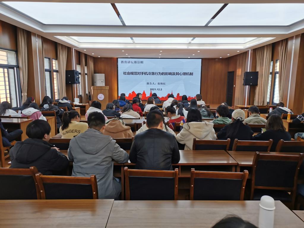 张艳红以“社会规范对手机冷落行为的影响及其心理机制”为题作报告。她从手机冷落行为形成的原因、社会规范对于手机冷落行为的影响及作用机制、4个研究来分析影响手机冷落行为的内、外原因。就手机冷落行为的改变方法展开探索,并提出对这一研究的未来展望。在互动环节,张艳红针对员工提出的问题一一进行了解答。